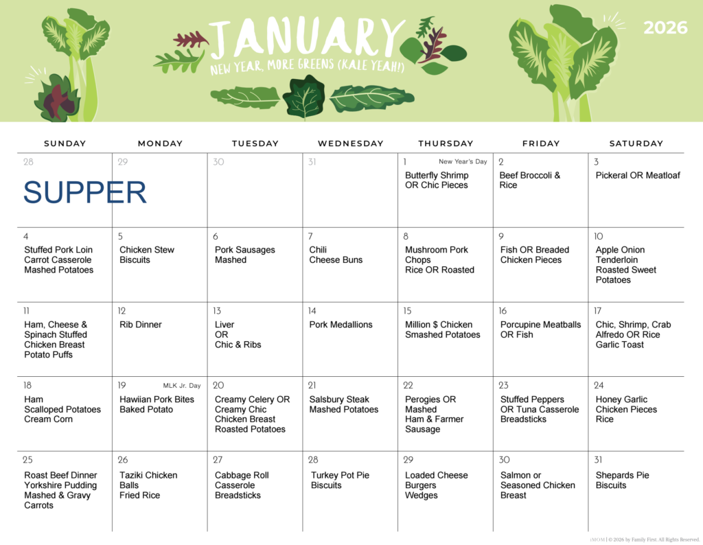 JANUARY Supper Menu