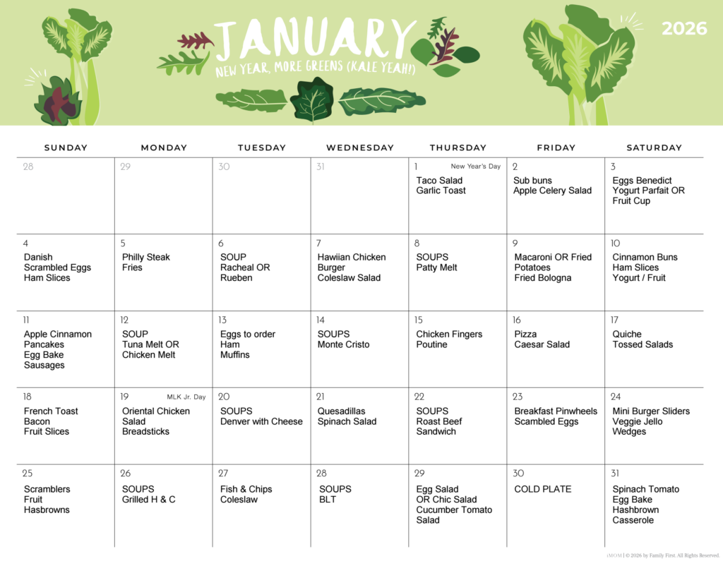 JANUARY Lunch Menu