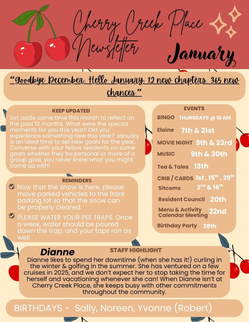 JANUARY News Letter & Activity Calendar