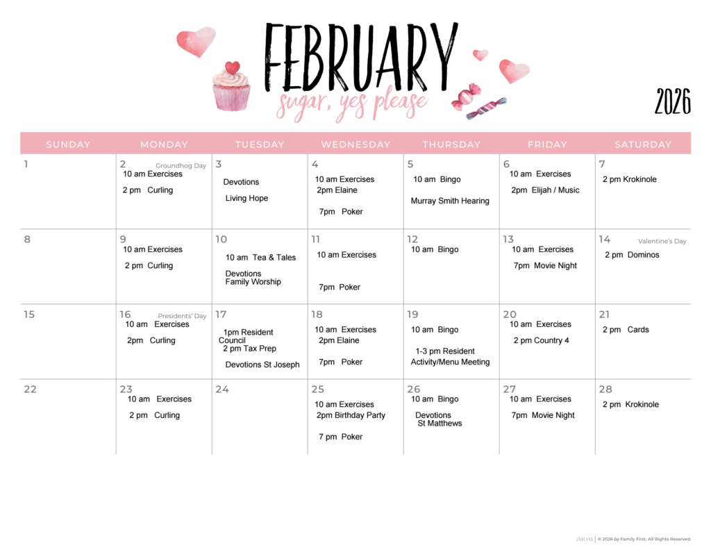 FEBRUARY News Letter & Activity Calendar